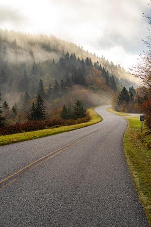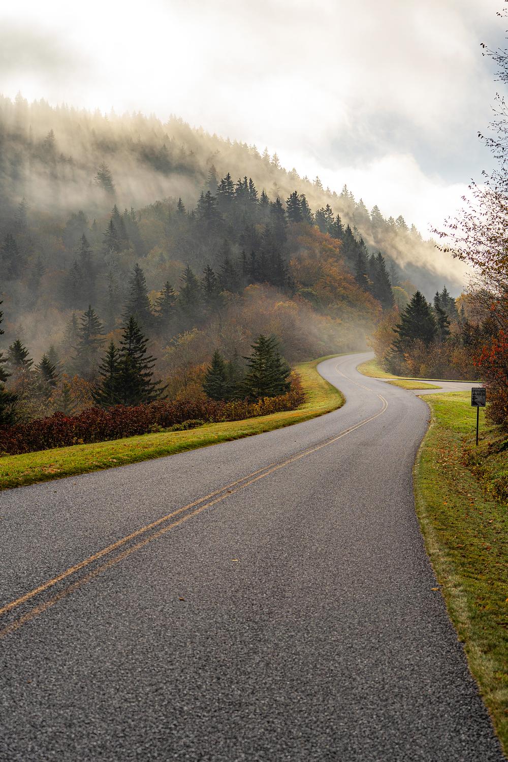 Fog and light meet on a ridge near Devils Courthouse on the Blue Ridge Parkway