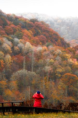 Frost and snow cover colorful trees in Great Smoky Mountains National Park on Newfound Gap Road.