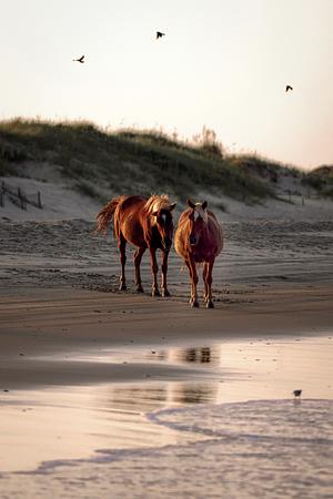 A pari of wild horses relaxing together near Carova, NC.