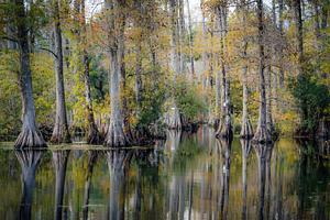 Pops of orange at the Cypress Gardens in Moncks Corner, SC.